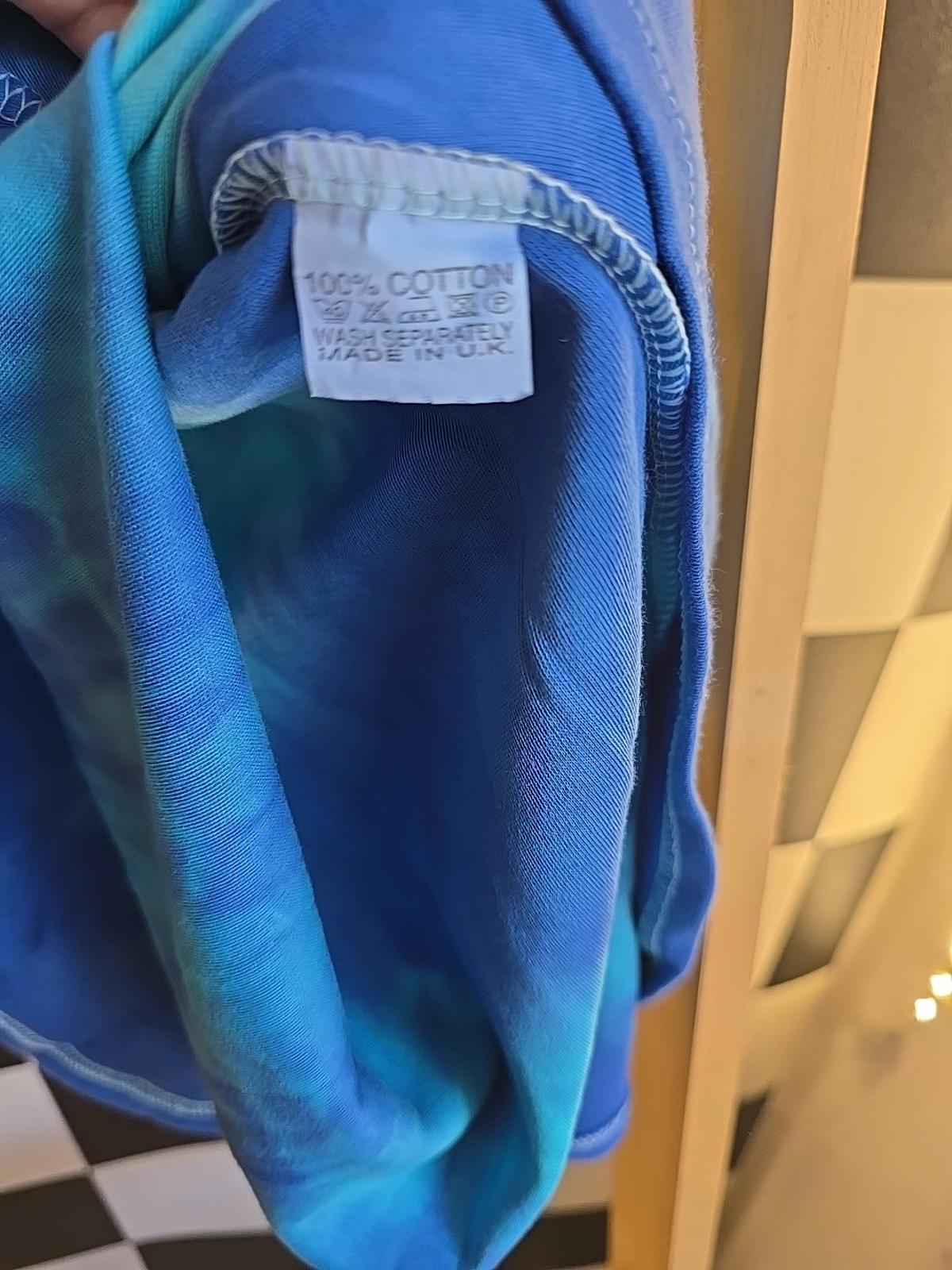 This brand new deadstock tie-dye vest dress is made from soft cotton, perfect for the summer season. The A-line style dress features a vibrant blue tie-dye pattern, making it a casual and stylish choice for women. With a short dress length and a regular size S fit, this UK-made dress is sure to stand out in any wardrobe.