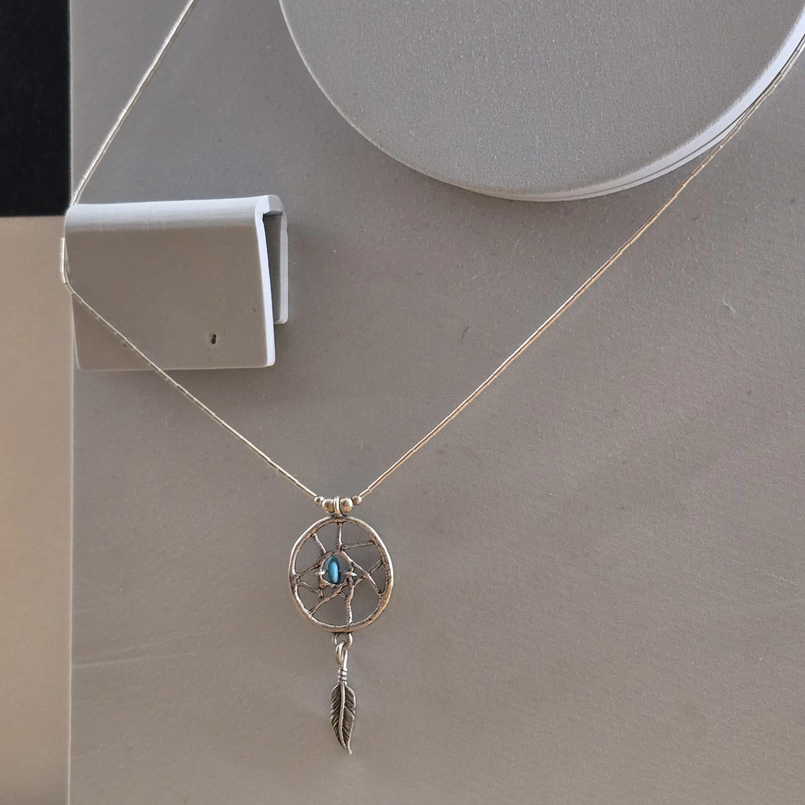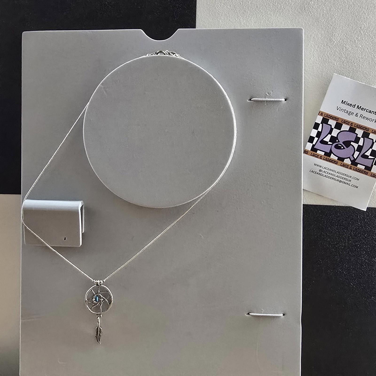 Dream Catcher Sterling Silver Turquoise 18" American Chain Necklace Vintage