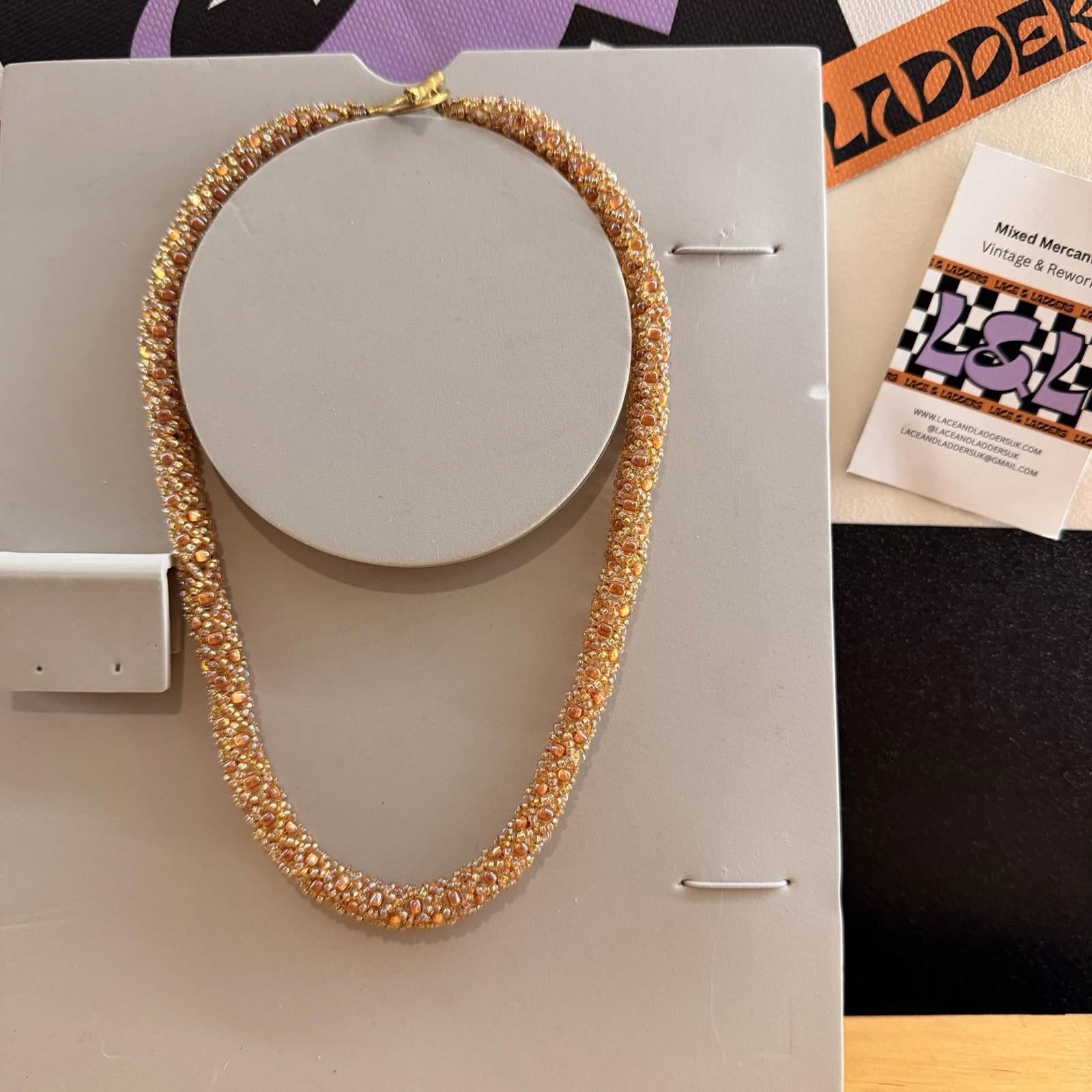 Handmade Vintage Bronze Colour Autumn Necklace Beaded Costume Jewellery