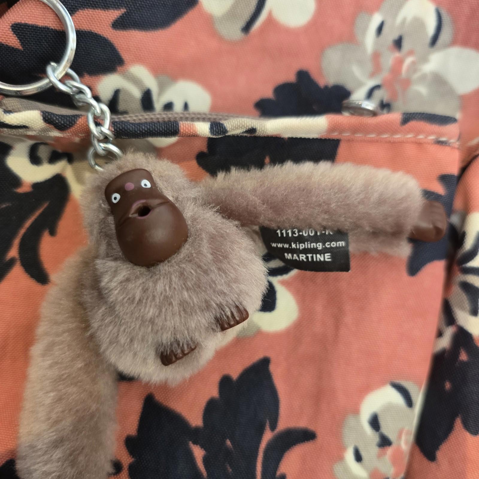 Kipling Cross Body Bag Peach Black Flowers Large With Monkey extra pockets