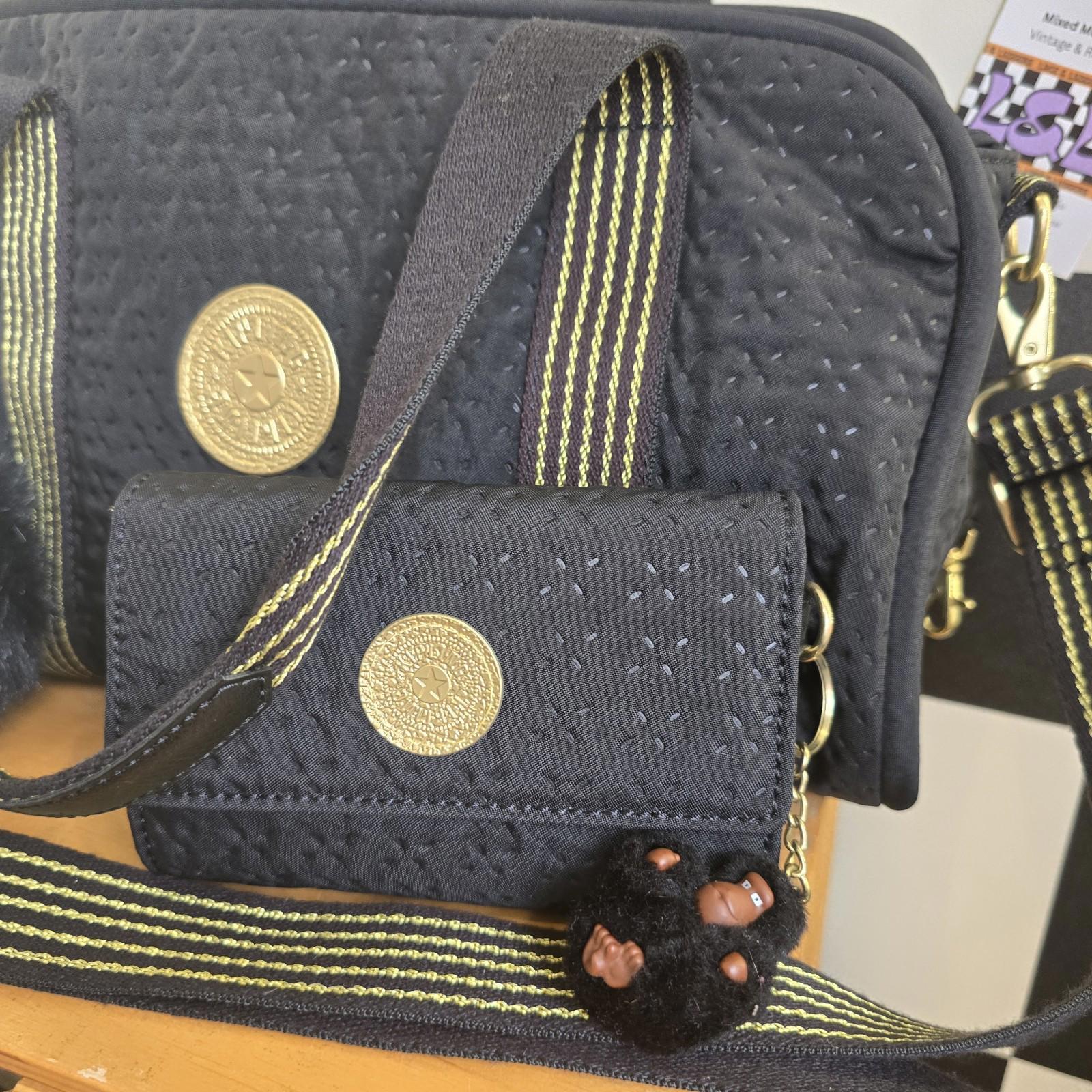 Kipling "Sinala" Premium Shoulder Bag with Detachable Strap & purse black & gold
