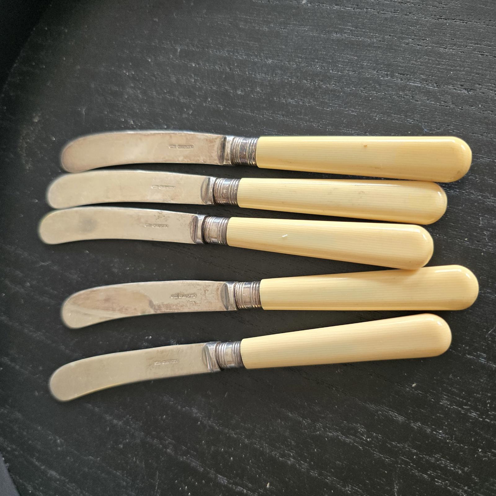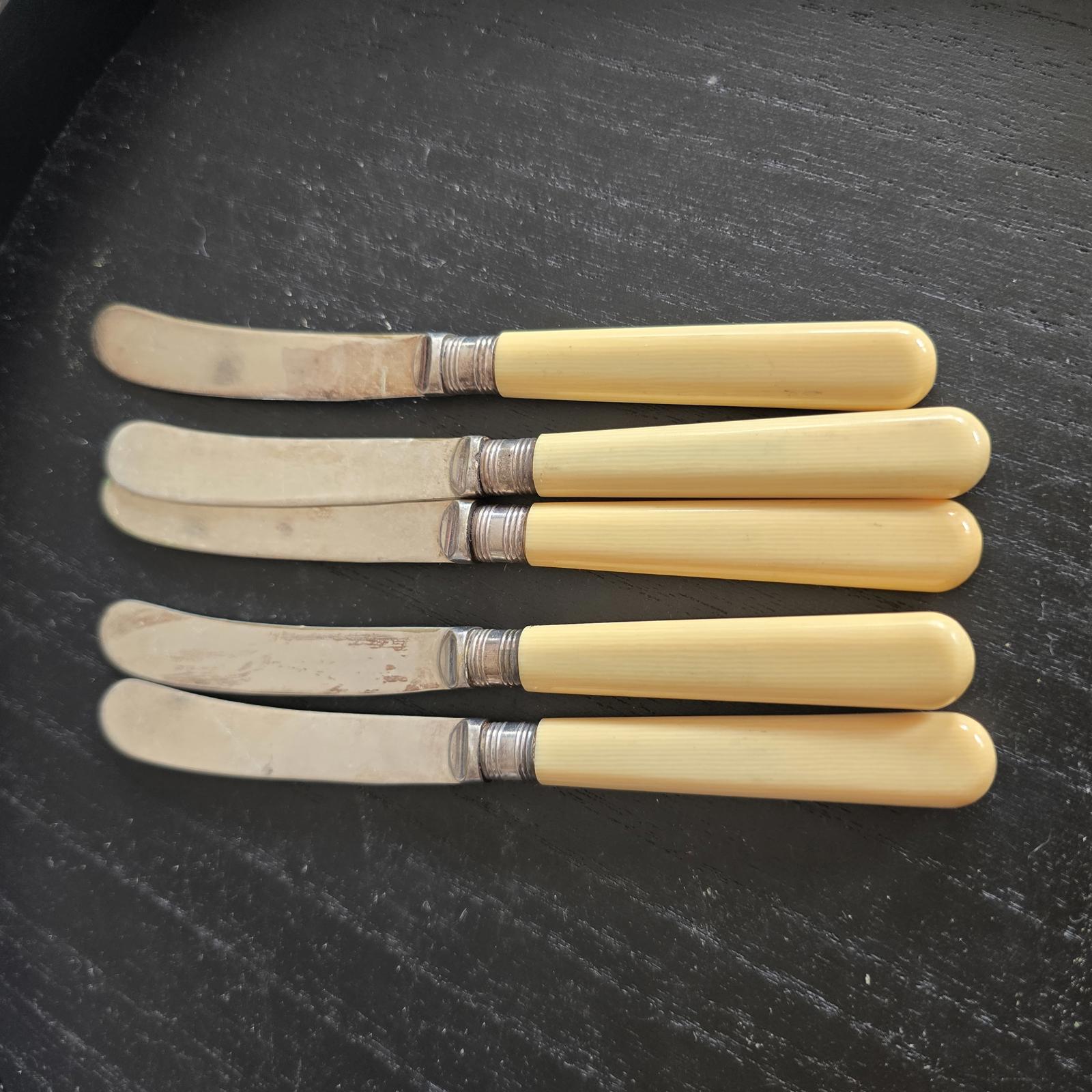 Set of 5 Vintage Butter Knives with Yellow Handles SILVER PLATED EPNS