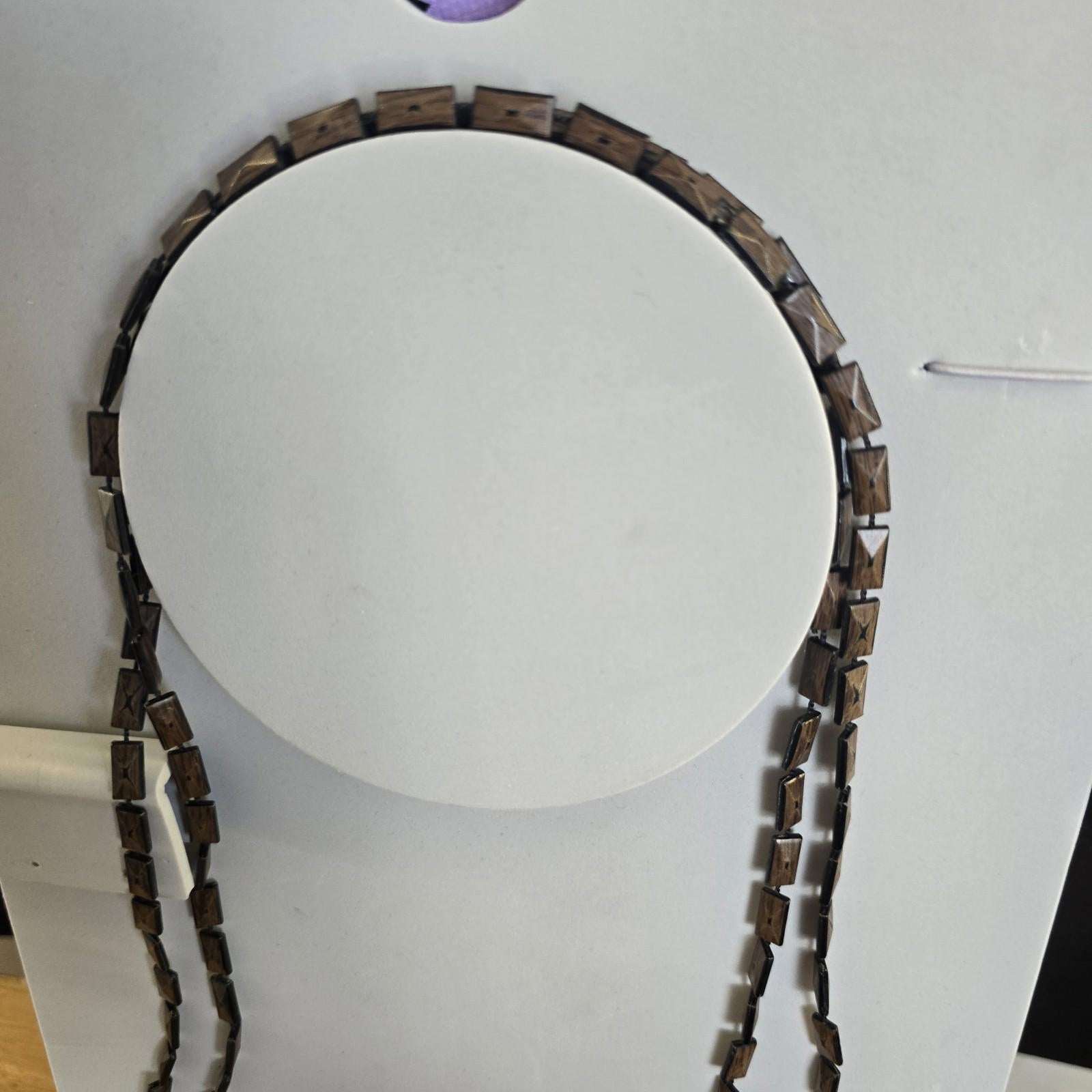 Unusual Vintage Wood Effect Long Necklace MCM 1960s Retro Statement Jewellery