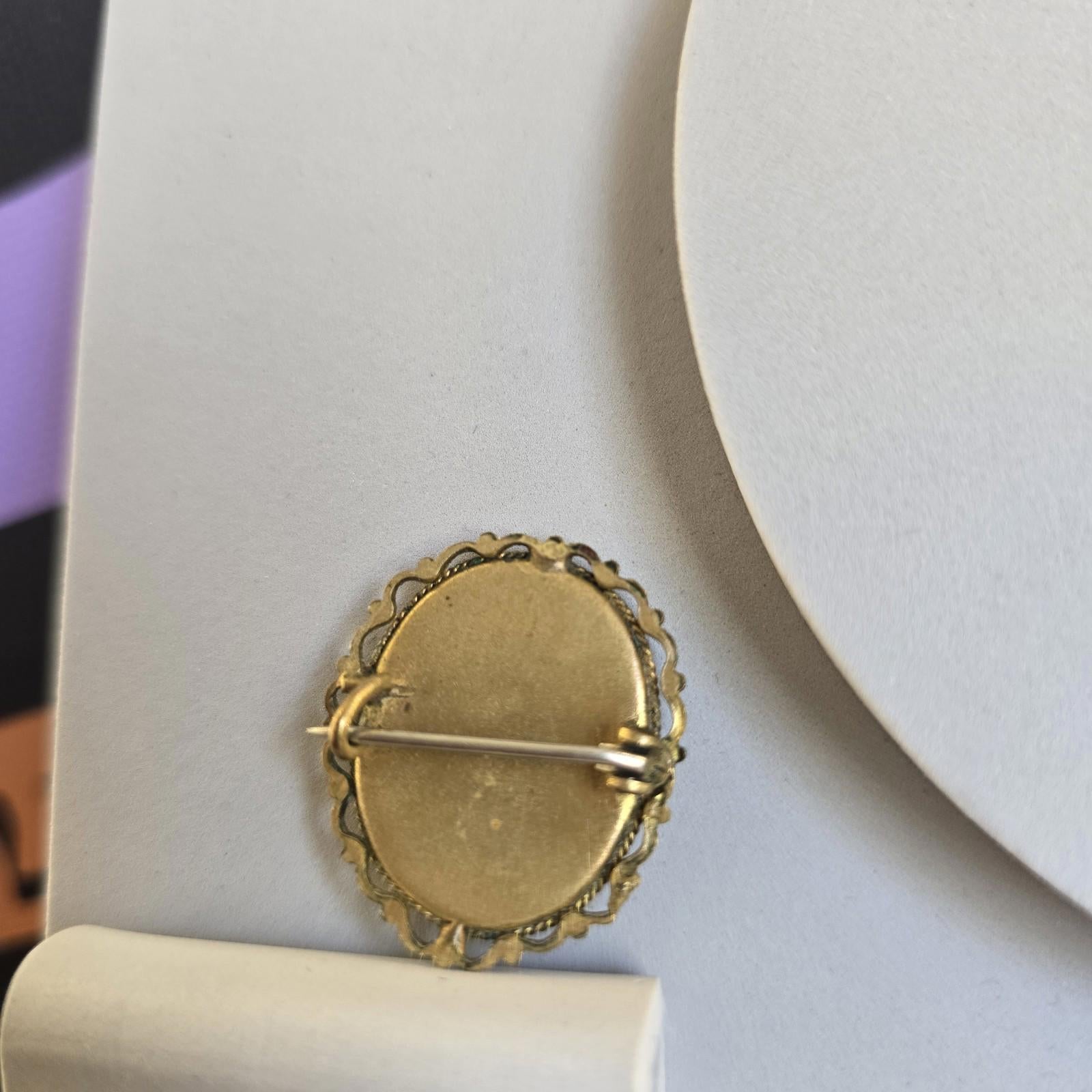 This vintage brooch is a stunning piece featuring bright colours and a gold tone finish. The antique brand adds a touch of nostalgia, making it a unique and stylish accessory for any outfit. With its costume jewellery department and brooch style, this piece exudes a timeless elegance that is sure to stand out in any jewellery collection. Perfect for adding a pop of colour and a touch of vintage charm to your look.