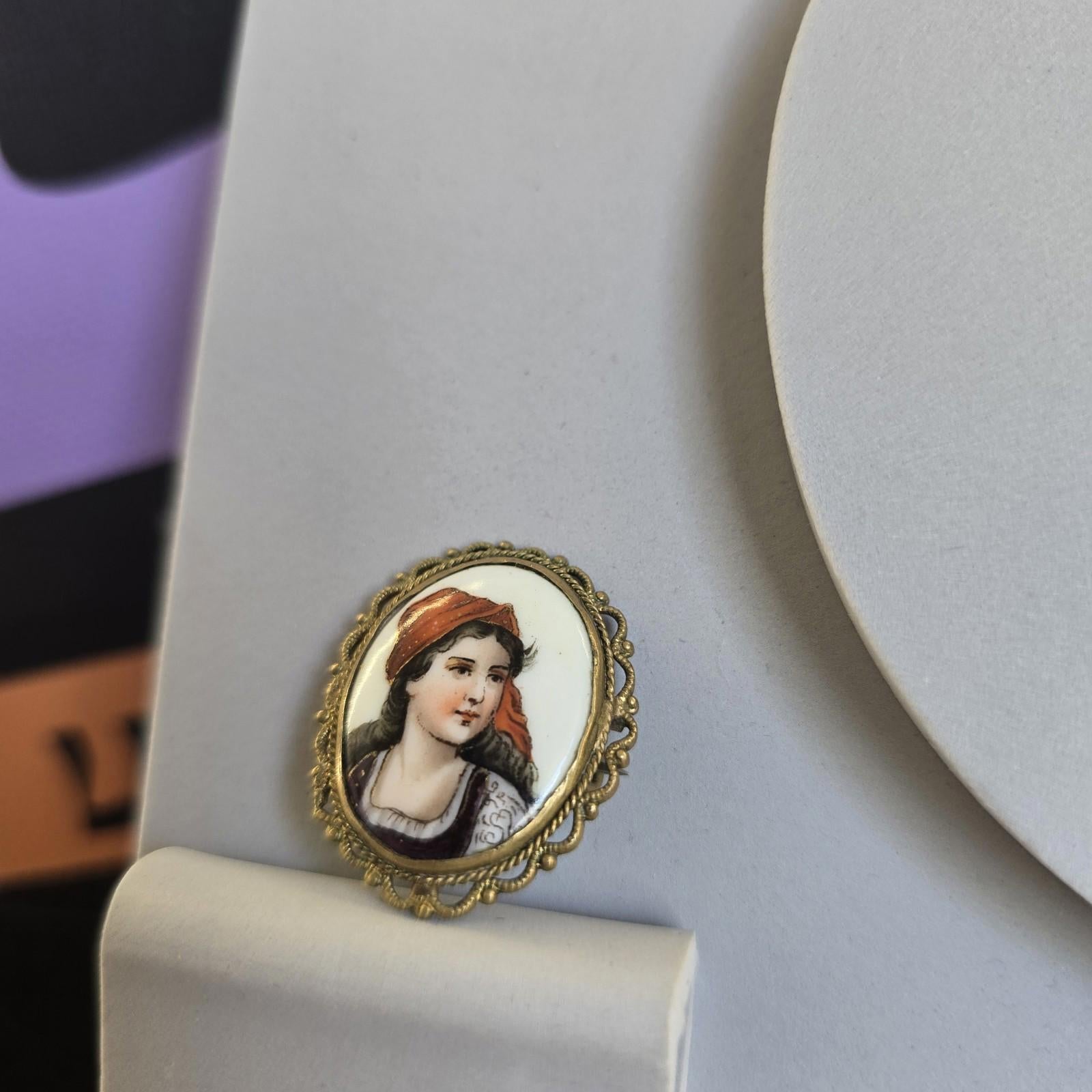 Vintage Brooche Lady Bright Colours Gold Tone