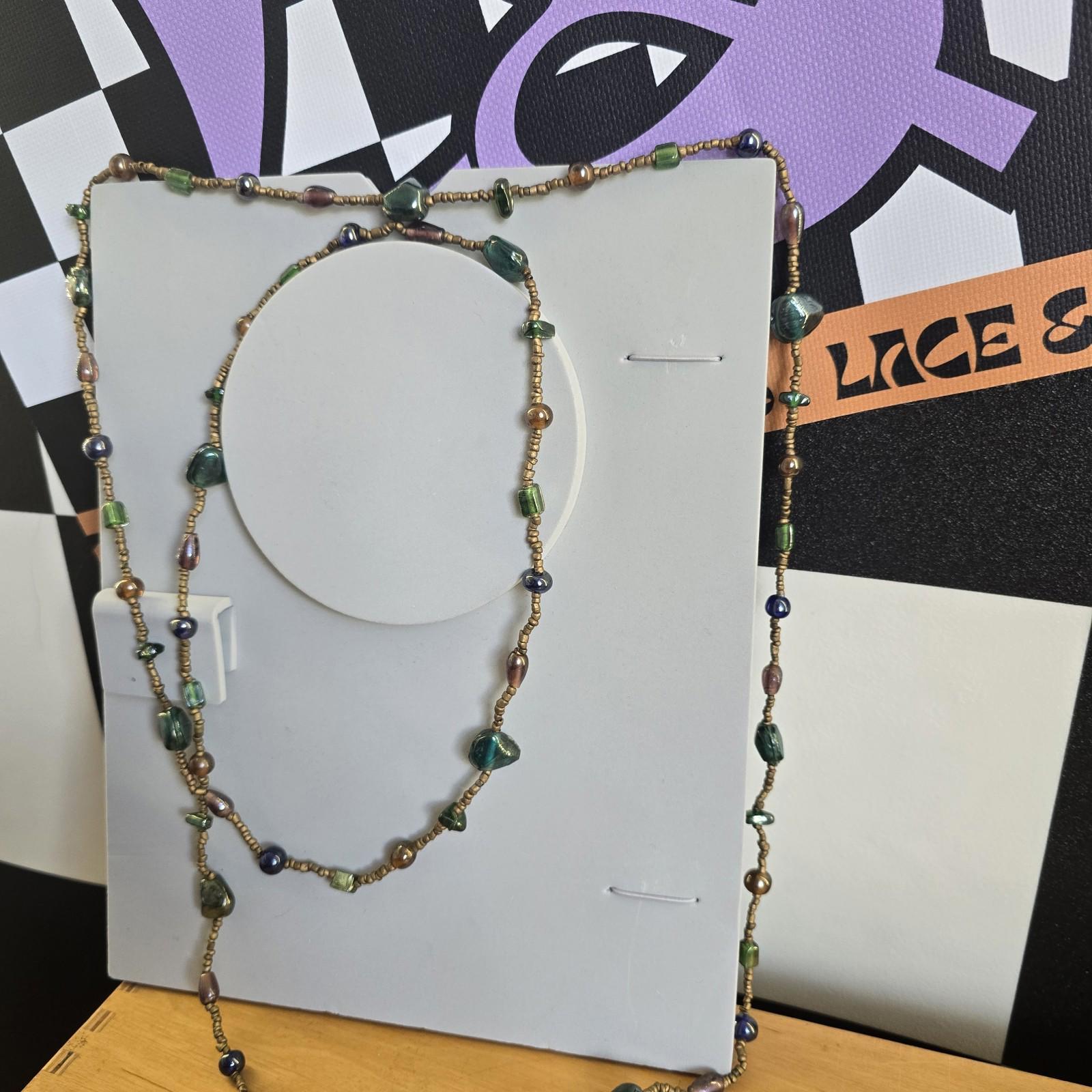Vintage Costume Long Beaded Green and Brown Necklace Jewellery