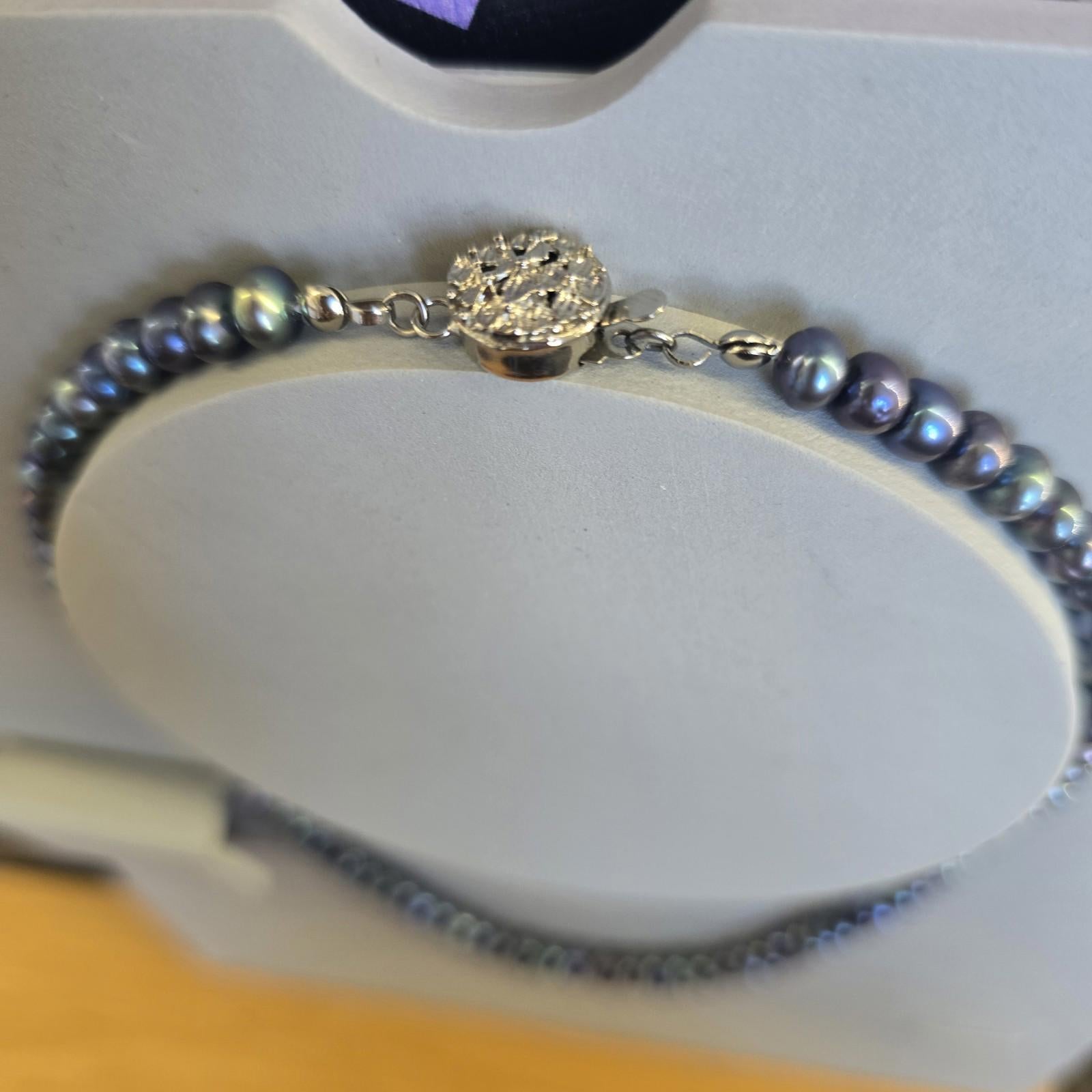 This Vintage Estate Cultured Freshwater Pearl Necklace features baroque peacock pearls, adding a unique and elegant touch to any outfit. The silver and gold tone metal complements the cultured freshwater pearls, creating a timeless and sophisticated piece of fine jewellery. The necklace is secured with a barrel closure, making it easy to wear and ensuring the pearls stay in place for a classic look. Ideal for those who appreciate vintage jewellery with a modern twist.
