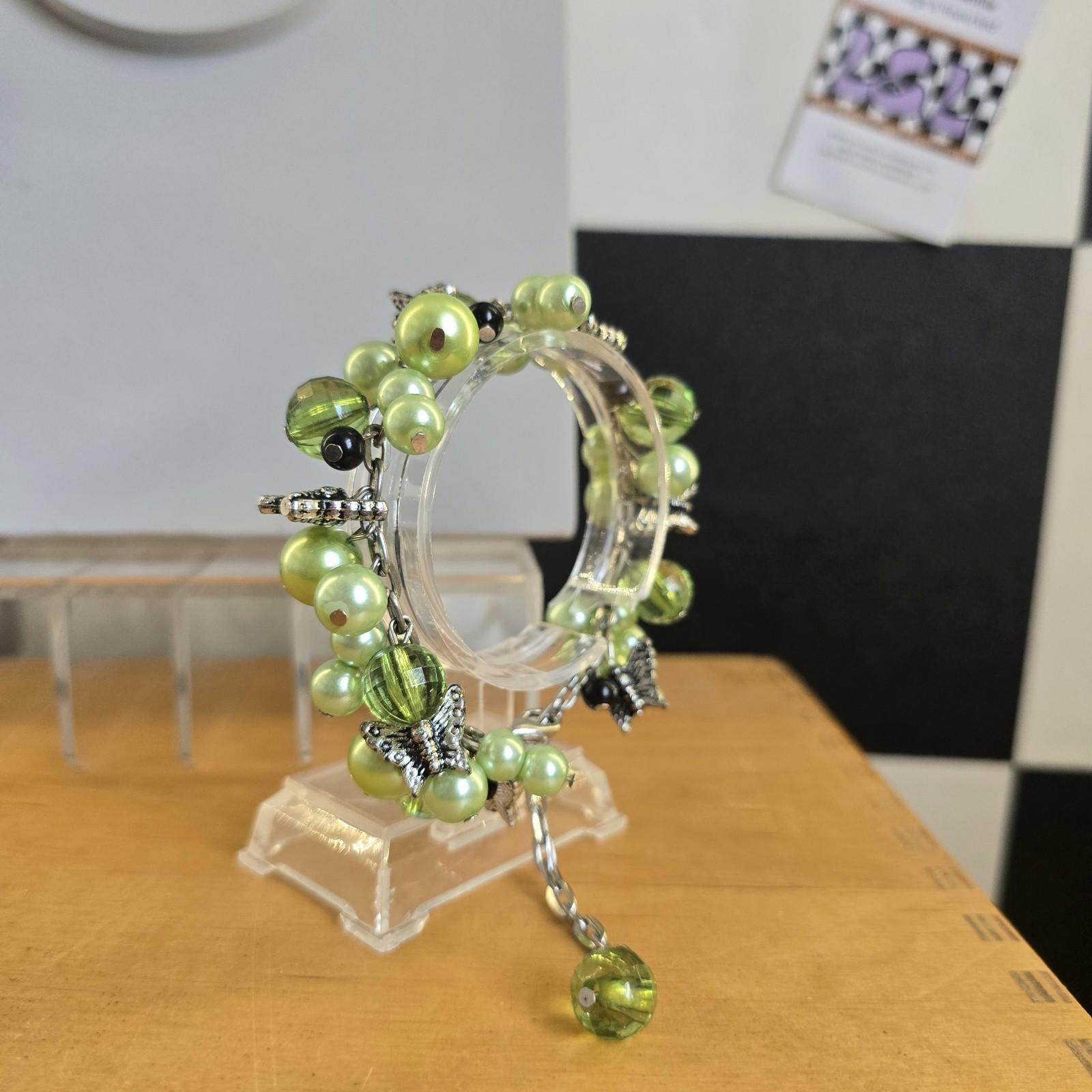 Vintage Green Y2k Multi Charm Bracelet Costume Jewellery Silver Tone