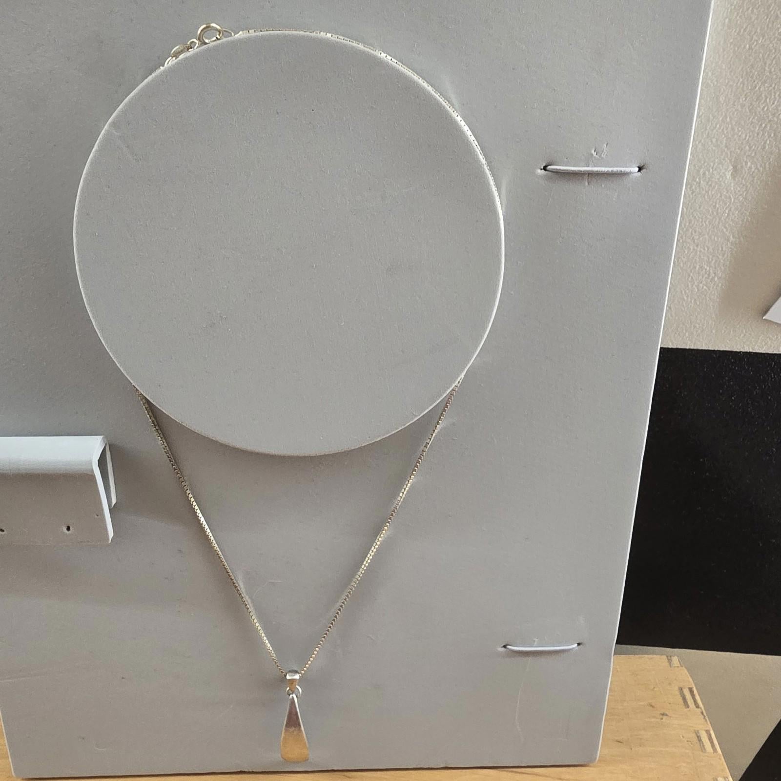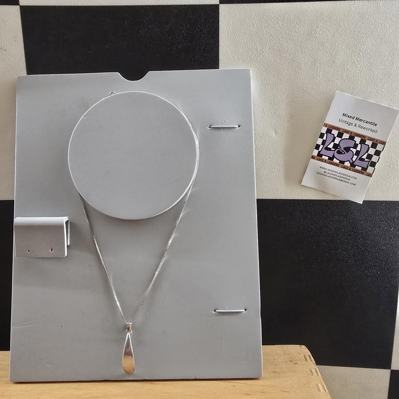 Vintage Silver Curve Teardrop Pendant Necklace Plain 925