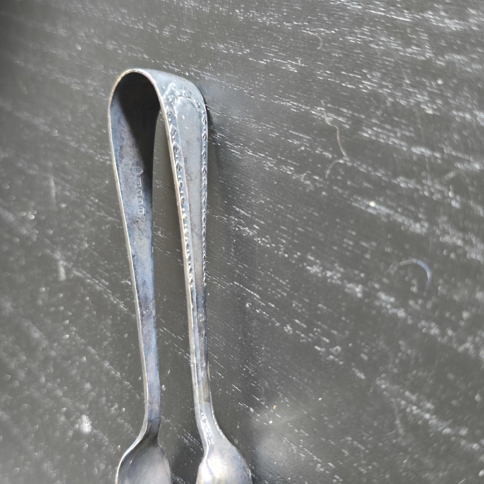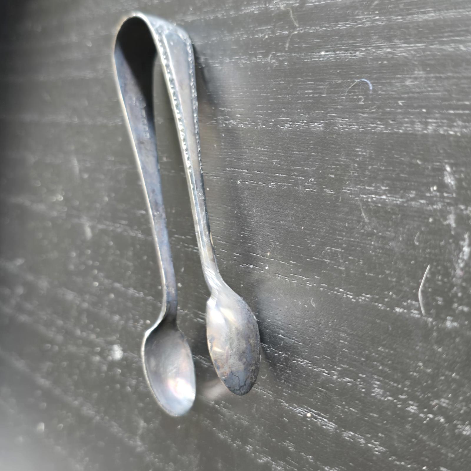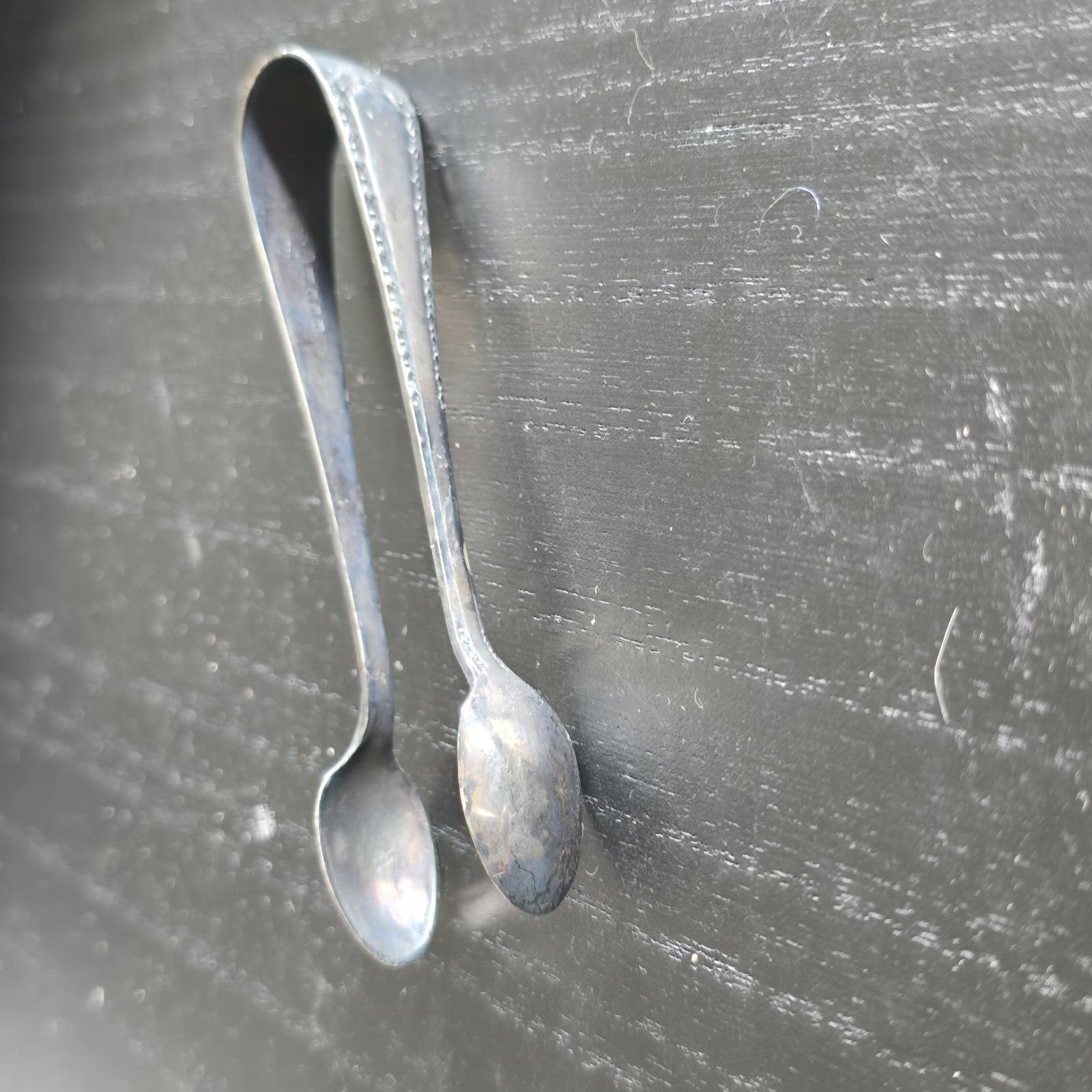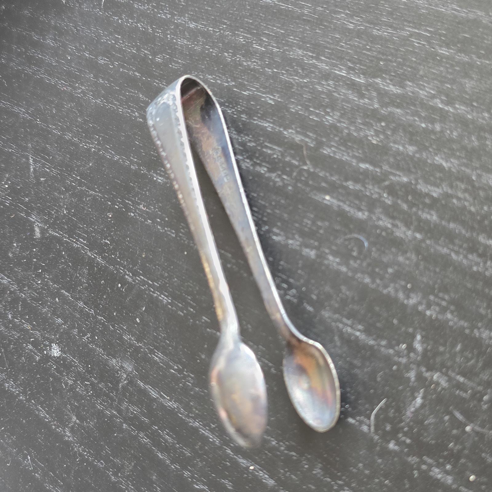 Classic vintage silver sugar tongs with a simple yet elegant design.