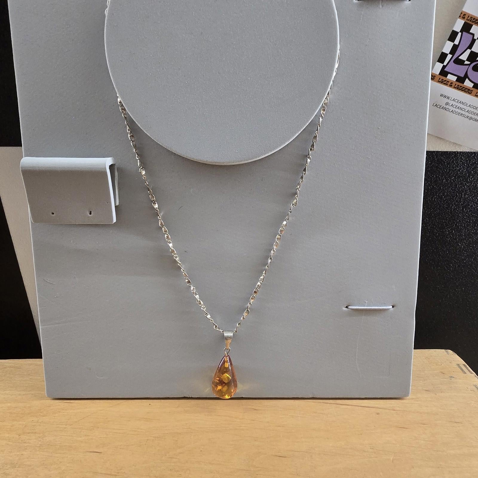 Zoria Baltic Amber-Pendant-Cognac Colour-925 Sterling Silver chain vintage